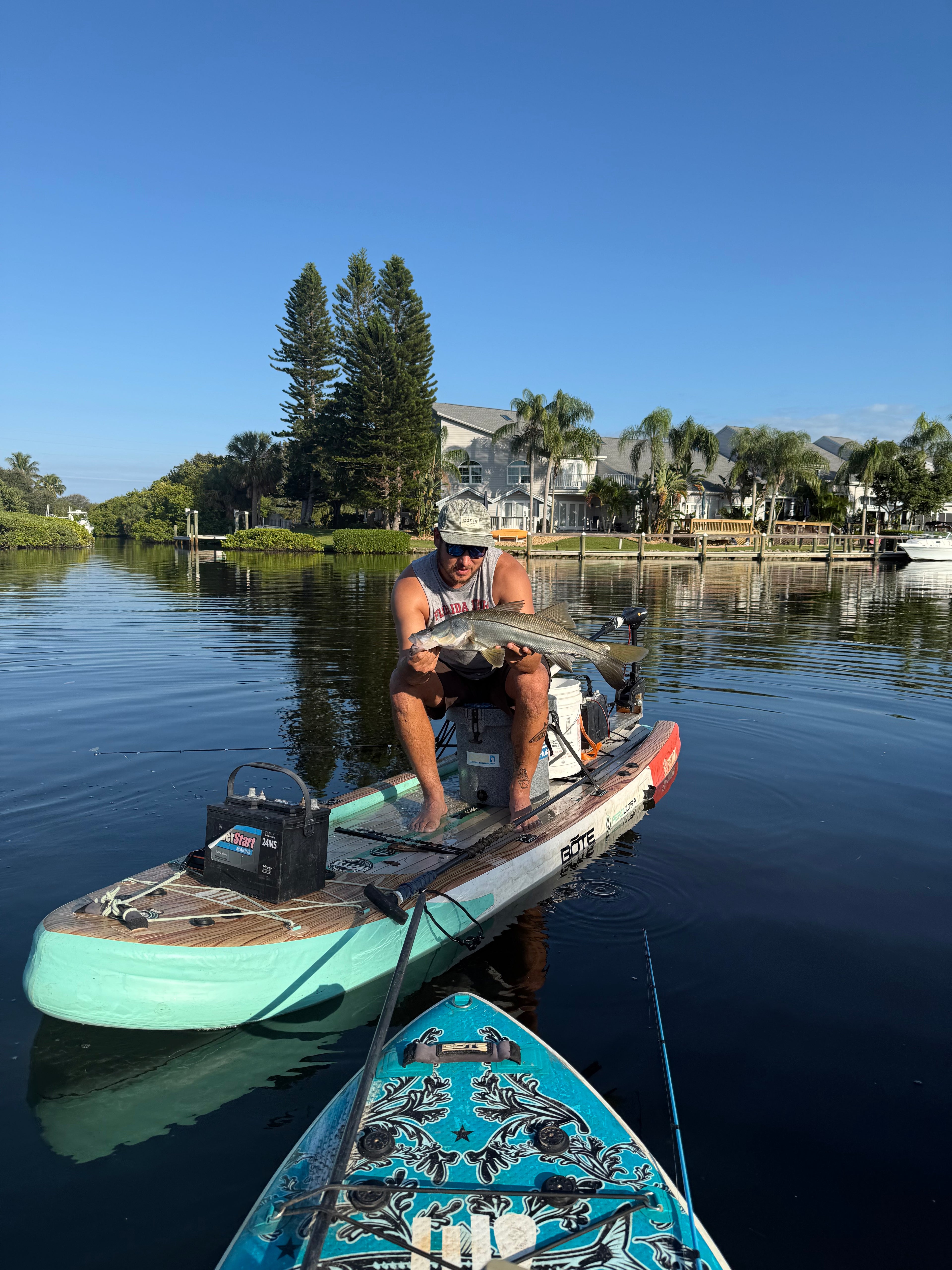 Strap it on your paddle board or kayak, drop the motor, and go.